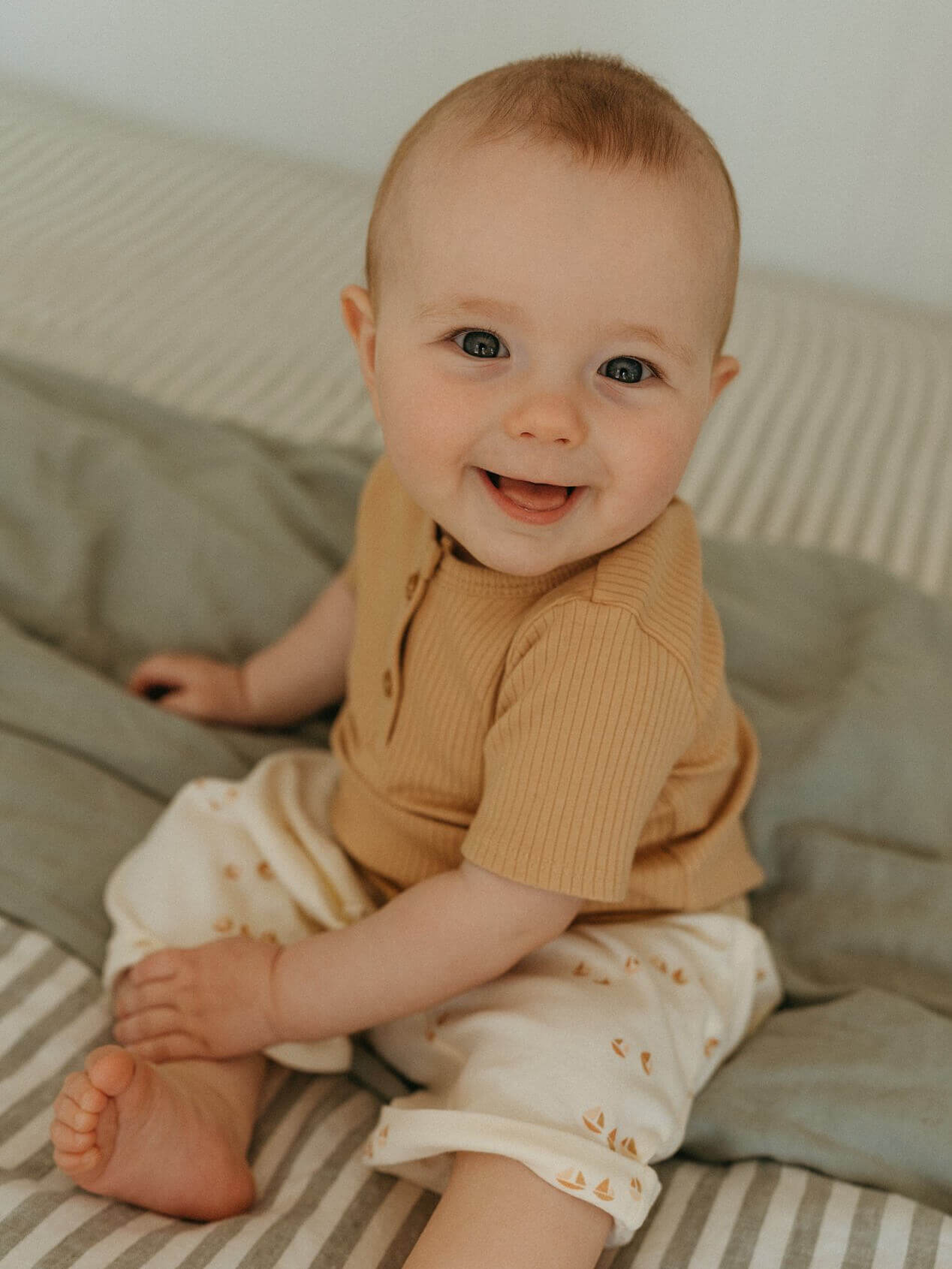 These shorts are an easy match for any top. We love them with our Lucas Henley Tee or our Matt Short Sleeve Bodysuit.
