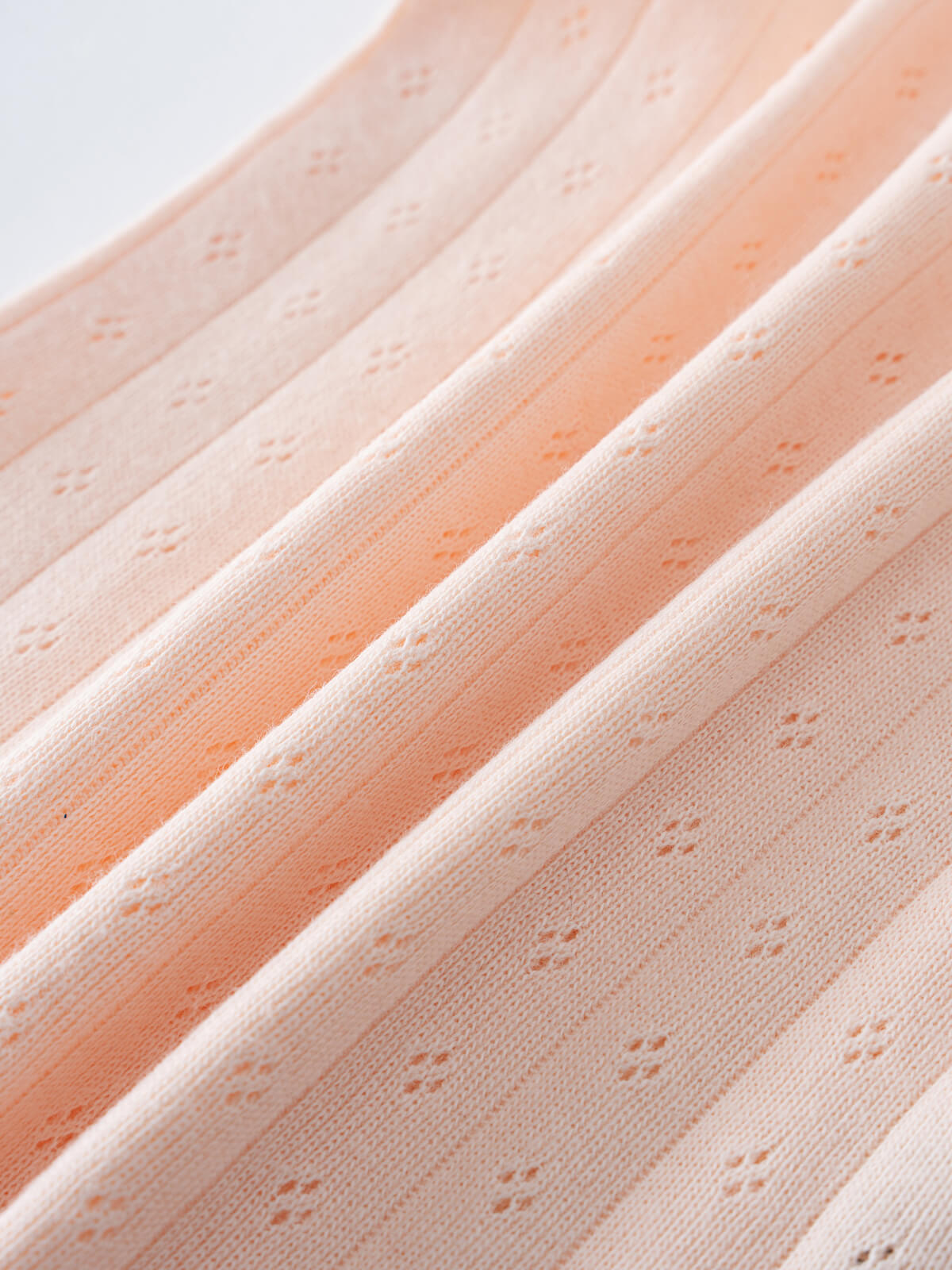 A soft and simple essential for summer days. The India Singlet Bodysuit is a go-to piece for keeping little ones cool and comfortable. The delicate pointelle knit adds a beautiful, subtle texture, making it perfect for wearing on its own or layering under a tee or with bloomers. In soft natural cotton, this versatile bodysuit is a must-have for every wardrobe, designed for easy dressing and endless summer play.