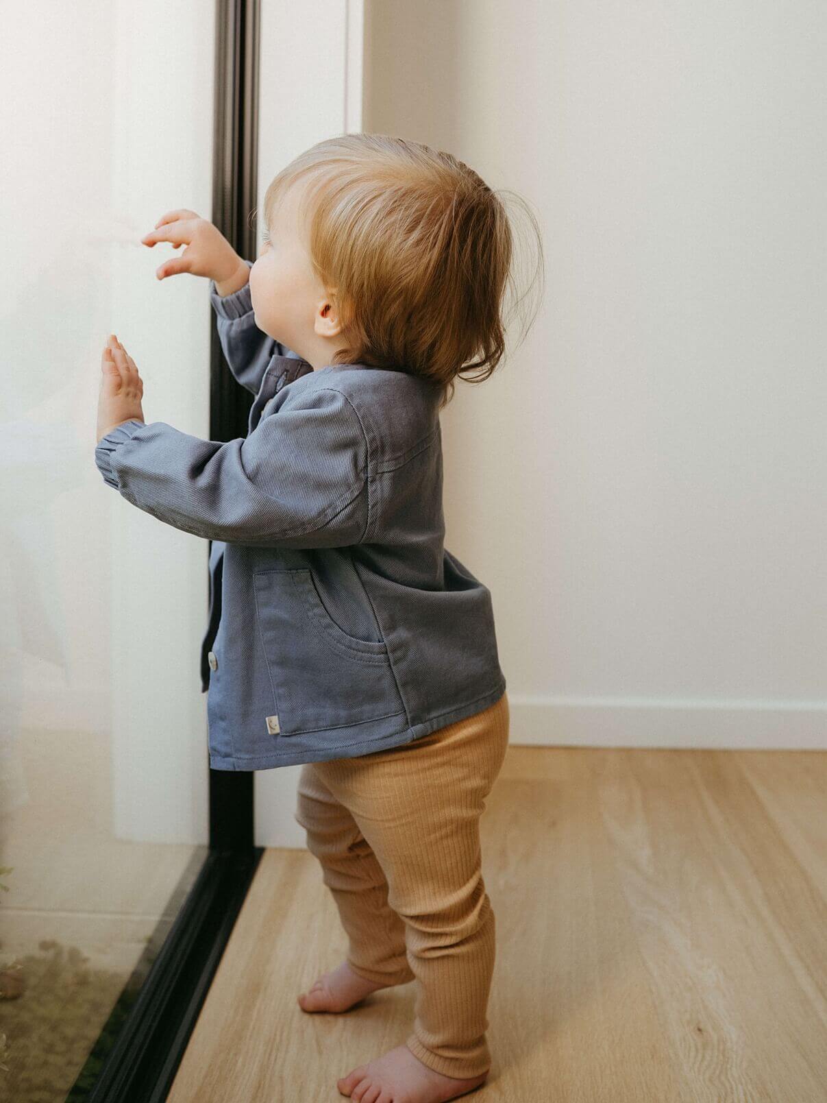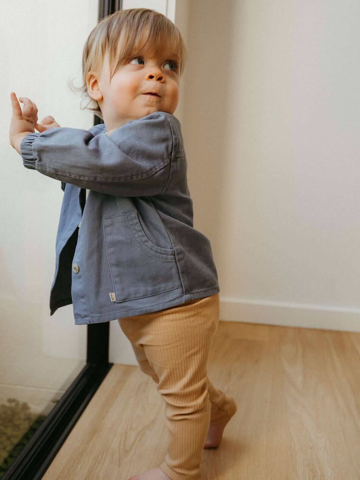 A stylish yet practical layering piece ready for a day of non-stop play and memory making. Our Jesse Jacket is made from organic cotton twill with a collarless neckline and chunky buttons down the front. Elasticated sleeves and oversized patch pockets add a playful feel to this modern jacket.