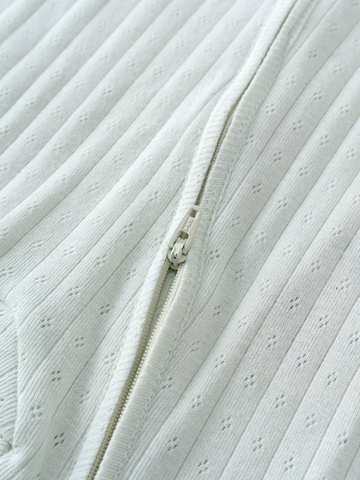 This cute one piece is perfect for both day-wear and peaceful nights. The delicate pointelle knit adds a beautiful, subtle texture, while the two-way zip and zipper cover at the neckline ensure fuss-free dressing and all-night comfort.